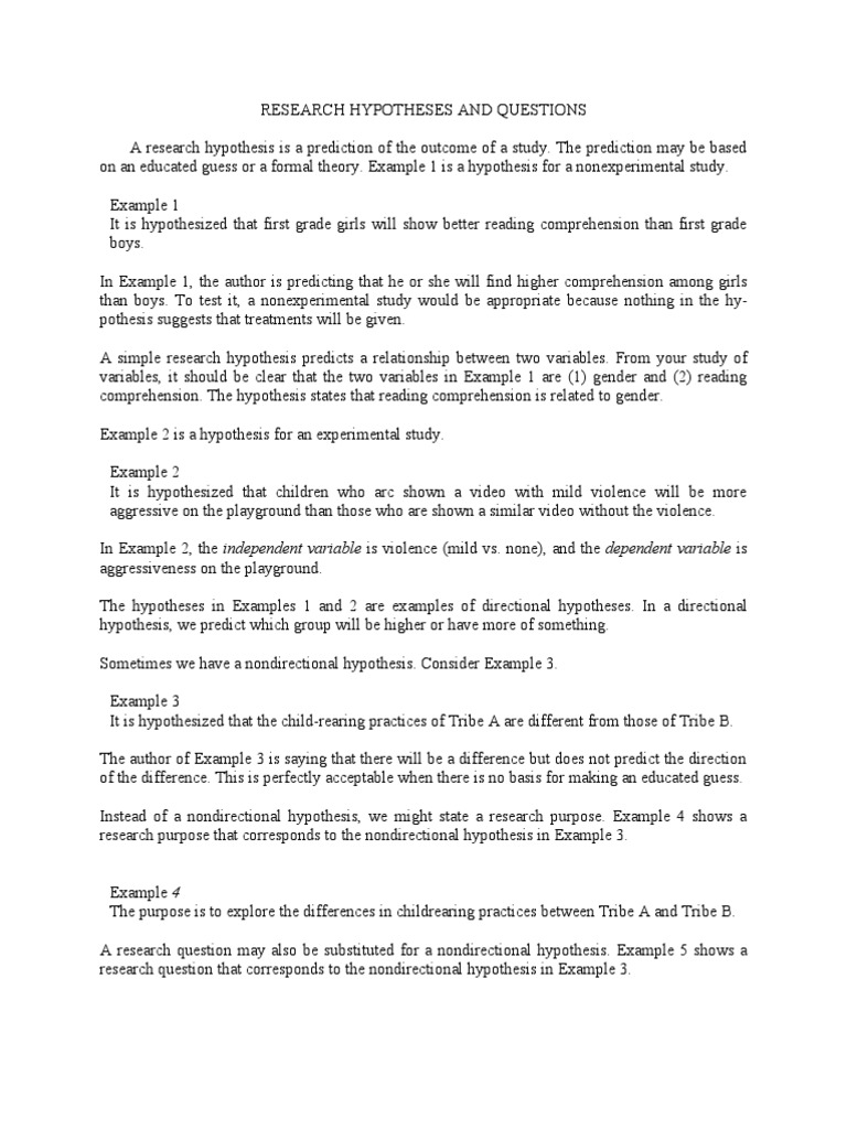 Your introduction should define the topic, consist of a context and rationale, as well as of a hypothesis and research questions. This is the initial point of any investigation that translates the research questions into a prediction. A reminder of the type of analysis you used (e.g. There is the hypothesis, the hook sentence, and the thesis statement. For each question or hypothesis, present: